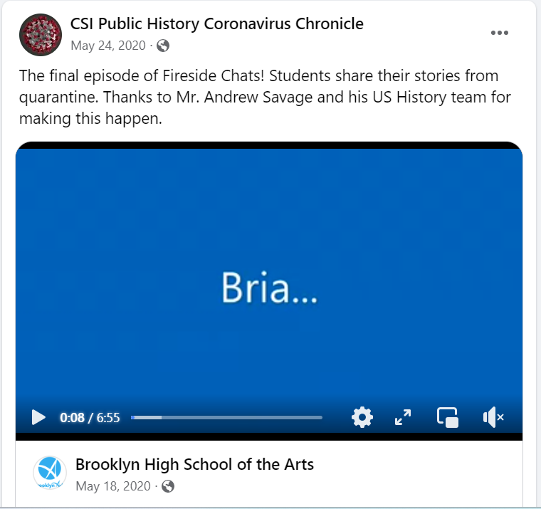 The final episode of Fireside Chats! Students share their stories from quarantine. Thanks to Mr. Andrew Savage and his US History team for making this happen.