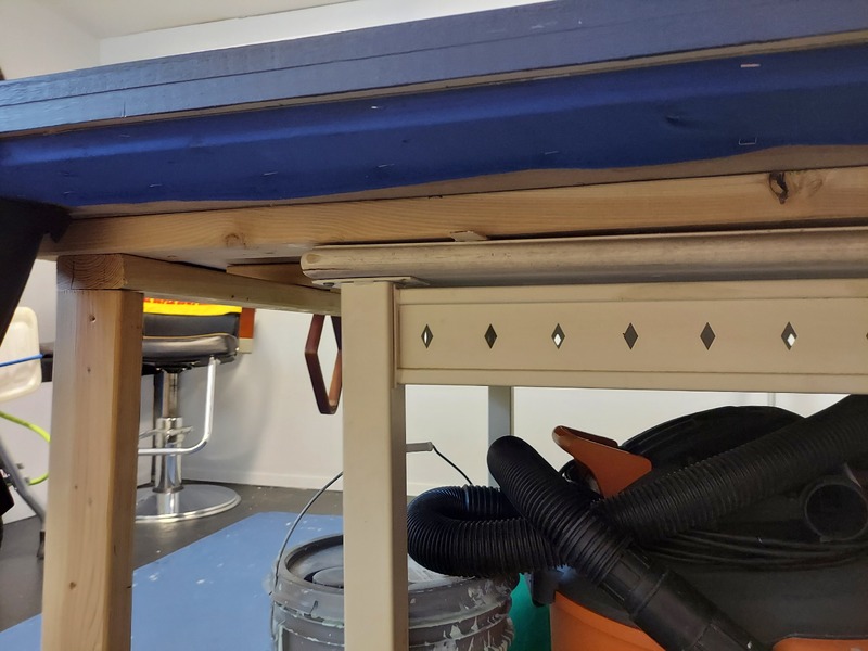 Breaking ground on March 19th, we used our decommissioned 20-year-old kitchen table as legs for our new creation. The board’s overhang allowed pockets to sit freely (no ball return system needed). On the days I had online class, my father intended to go downstairs “for about an hour” in the morning, before getting stuck in a jam by lunch, and working until dinner. I would assist in between classes, and when I was free, we’d get caught up in the room for hours on end. With Music Choice and MTV Classic the soundtrack of our toil, my Dad and I measured “tournament standard” dimensions - only to be slightly off, argued about what the heck a 142 degree cut really is, and savored the aromatics of wood glue and contact cement. The room was coated in sawdust, with scrap wood scattered neatly about. I was finally involved in my dad’s carpentry prowess after years of staring at his convoluted tools. Have you heard a Mitter saw in action? The grinding of the spiraling blades drown your ears with the screams of a motorcycle whizzing through a tunnel. I’d wince in fear that the time would come when the blade’s “SHING” would be followed by an agonized scream. My dad made mention of how woodshop teachers were always missing an appendage. He even shared horror stories like the time the blade guard failed to engage on a circular saw, skid free, peeled the side of his boot, cut through floor tiles, and sputtered wildly until it sliced the power cord.