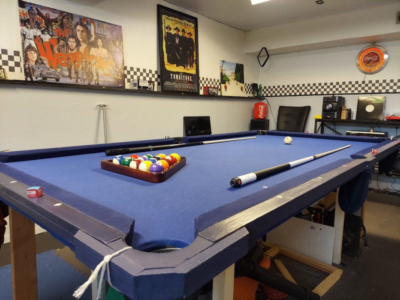 When I was 6 years old, my father built a pool table out of wood when he was working for a contracting firm that operated in what is now Brooklyn’s Industry City. At 9 feet It conveniently sat atop our giant dinning room table. It was a gorgeous deep blue with every authentic accoutrement short of nicotine-reeking cloth. The table lasted about 8 months until my mom wanted her dining room back, fair enough. For a long time that table felt like a fever dream. After the it departure it was seldom mentioned; the balls and commemorative Coca-Cola cuestick sat dormant in the far reaches of our old home.