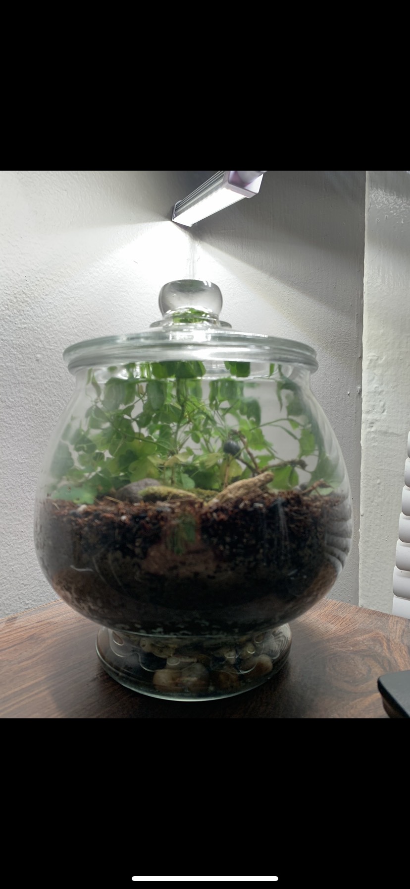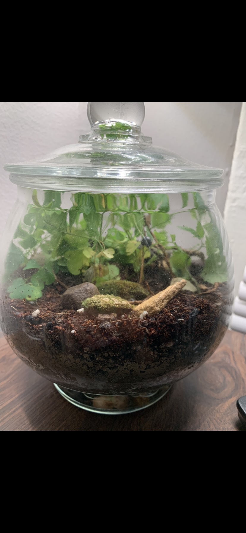 Covid took us away from everything and reality was hard to cope with. I decided to retreat into nature. The struggle was that I hated being in my house and I couldn't stay outside forever. I decided that I would bring nature indoors and started to make terrariums. I was able to exercise, practice a hobby, create art. and safely quarantine all at once.