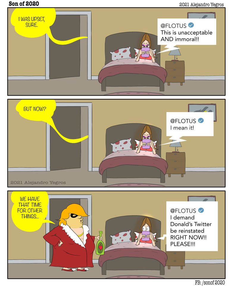 [@FLOTUS: I demand Donald's Twitter be reinstated RIGHT NOW!! PLEASE!!!]
