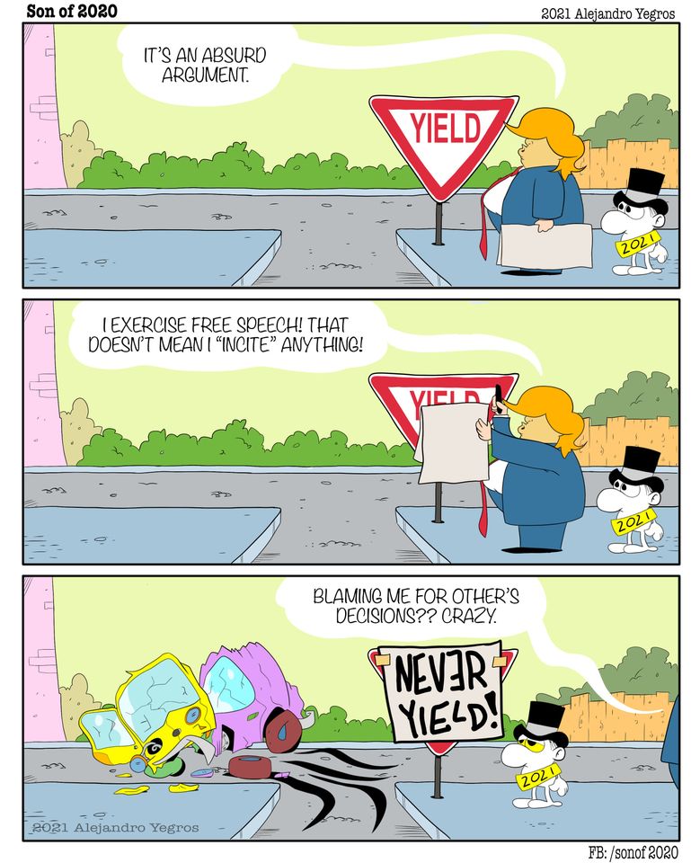"I exercise free speech! That doesn't mean I "incite" anything!"