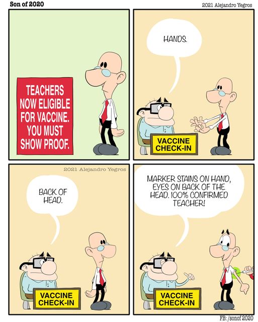 "Marker stains on hand, eyes on back of the head. 100% confirmed teacher!"