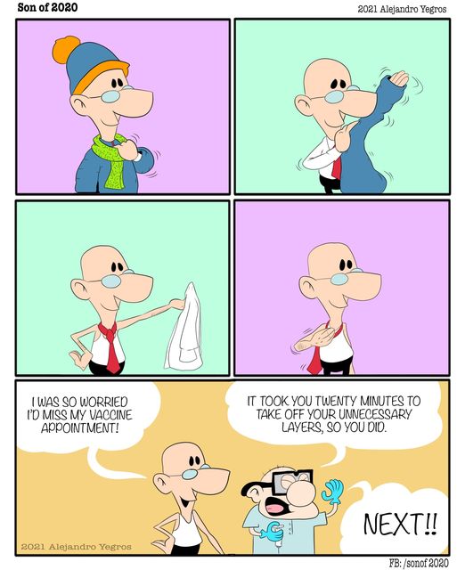 "It took you twenty minutes to take off your unnecessary layers, so you did. Next!"