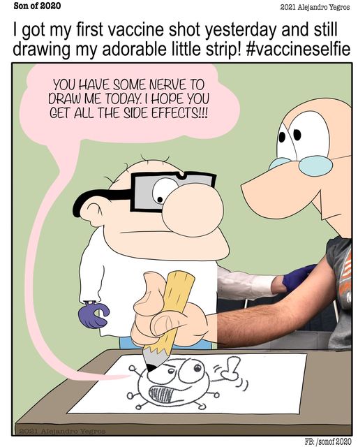 I got my first vaccine shot yesterday and still drawing my adorable little strip! #vaccineselfie