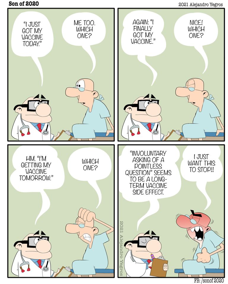 "Involuntary asking of pointless question" seems to be a long-term vaccine side effect.