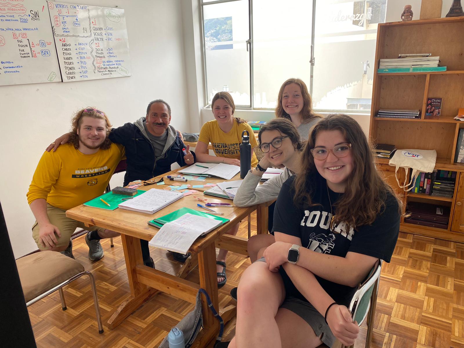 This photograph is from a trip I took to Ecuador while in undergrad in May of 2022. The trip was school-sponsored and was an immersive Spanish-learning trip. Although the trip took place almost 2 years after the outbreak of the pandemic, this was the first trip I took after COVID-19. There were still a lot of COVID-19 restrictions in place, and there was a point where we weren't even sure we would be able to go because COVID-19 cases had resurfaced with a vengeance. Before going, we all had to get a COVID-19 vaccine and before returning, while we were still in Ecuador, we had to take a COVID-19 test to make sure we weren't infected with the virus before coming back into the US. Throughout the trip, we also had to wear masks whenever we were out in public or in close quarters with others. Even though these restrictions were in place, it was still an amazing trip. The photo I attached to this submission is a picture of a few of us in our Spanish class. The trip was three weeks long, but every morning we would take Spanish classes before we began sightseeing. Some of this sightseeing included touring Quito, staying in the rainforest for a week, visiting art and history museums, going to indigenous markets, and hiking volcanos. Of course, all of these experiences were incredibly memorable and fun, but sometimes, my greatest memories of the trip come from the simple moments. The attached photo includes one of these simple moments: learning and laughing amongst new and old friends. The experiences were magnificent, but the relationships I built on this trip will last a lifetime.