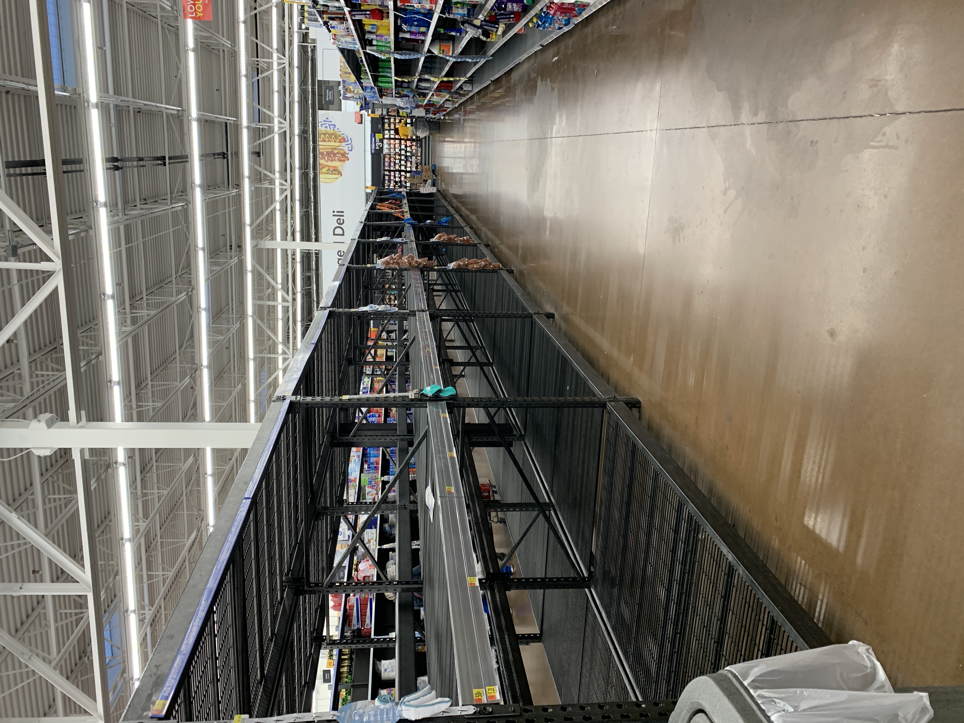 Bare toilet paper shelves at Walmart in Mesa Riverview