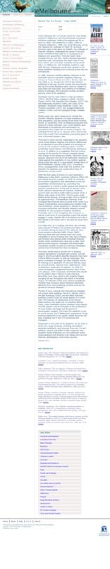 2009 Encyclopedia of Melbourne commentary on the Swine Flu, reflecting on the 1919 Spanish Flu epidemic and noting historical continuities and memory making.