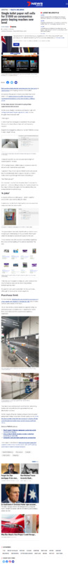 A commercial news website reports on the panic buying of toilet paper. URL for full article here: https://7news.com.au/lifestyle/health-wellbeing/single-toilet-paper-roll-sells-for-1000-as-coronavirus-panic-buying-reaches-new-level-c-729542