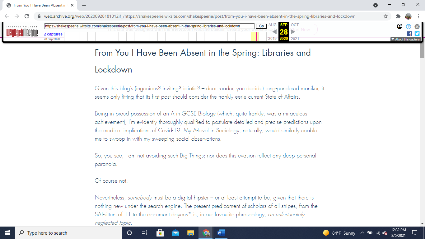 A blog which fumbles in the proverbial haystack to find the - dare I say it - beneficial possible outcomes of the library lockdown for researchers.