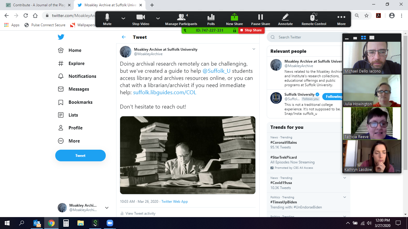 Doing archival research remotely can be challenging, but we've created a guide to help @Suffolk_U students access library and archives resources online, or you can chat with a librarian/archivist if you need immediate help: suffolk.libguides.com/COL