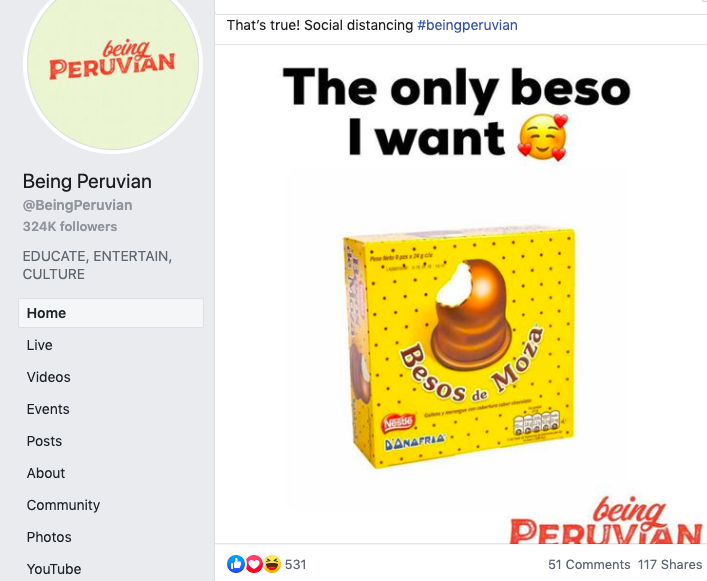 Screenshot of a meme posted on the Facebook page of Being Peruvian