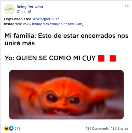 Screenshot of a meme posted on Being Peruvian's Facebook page