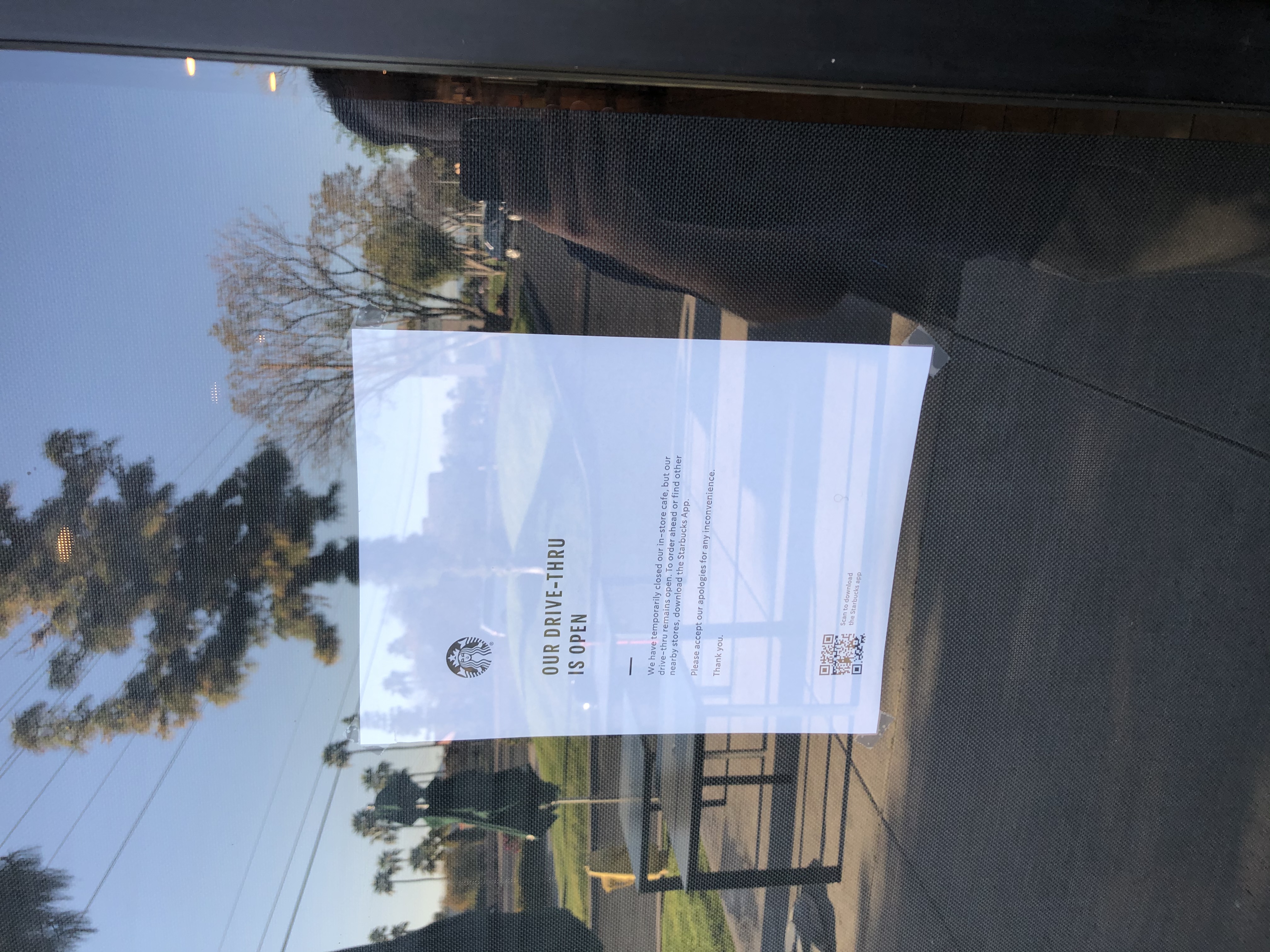 Starting on Saturday, March 21st, Starbucks closed its cafe stores until further notice. Drive thru stores also closed down their cafes, but are still open for mobile order and drive thru order. Picture is the Hayden and Osborn Starbucks location in Scottsdale, AZ.