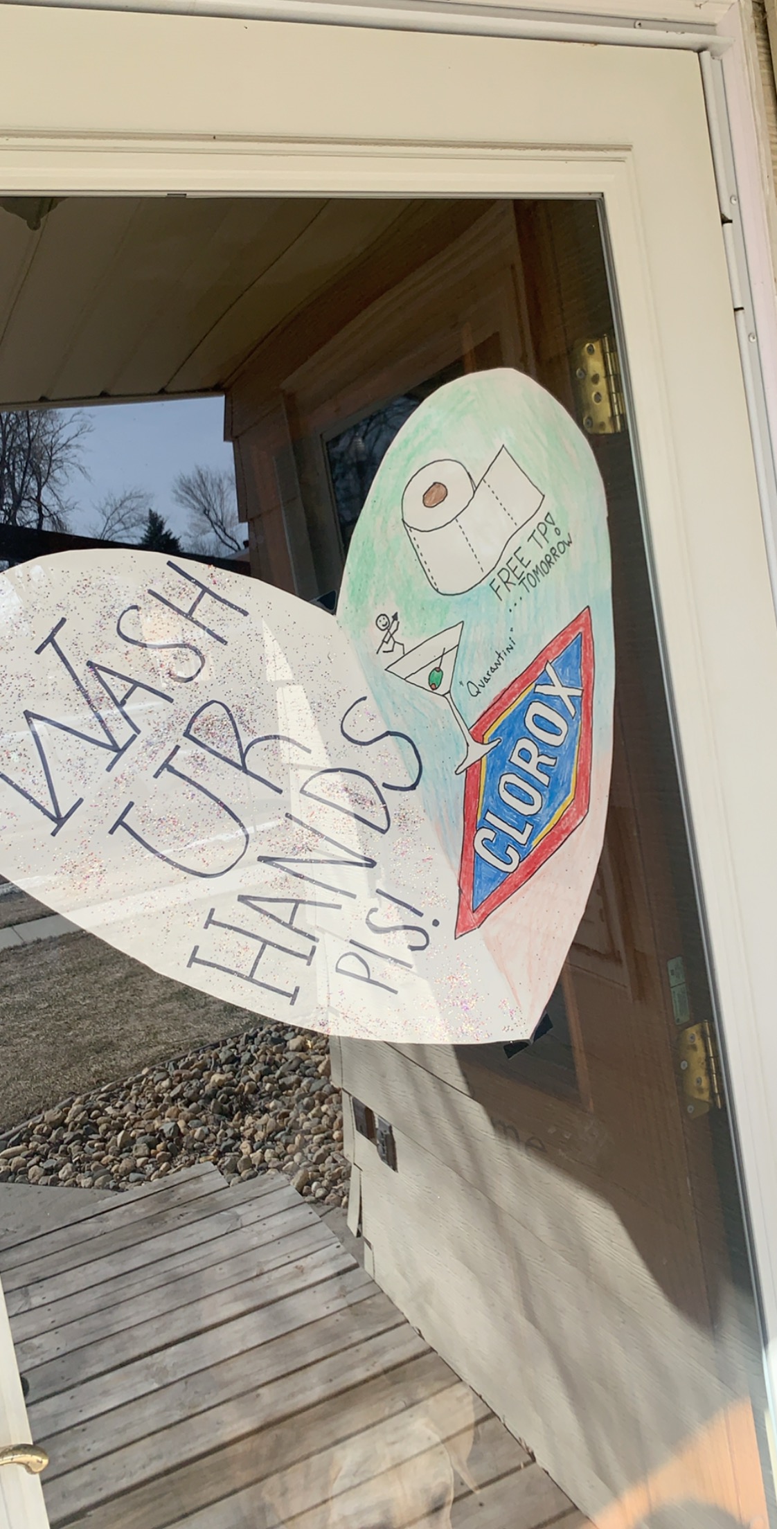 As states began 'stay at home' mandates, a movement started in North Dakota to spread some joy. The campaign, titled #AWorldofHearts began as a Facebook page and encouraged people to decorate their doors and windows with hearts. Some people chose to fill their windows with colorful hearts, while others decided to rely on humor during this time of uncertainty.