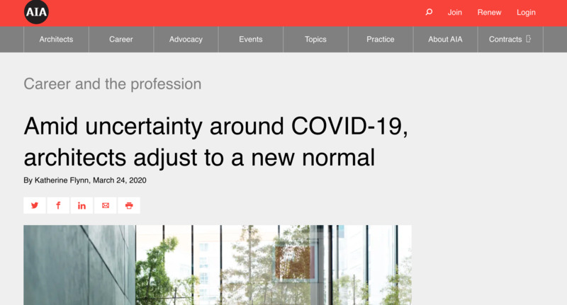 Article on American Institute of Architects website discussing effects of COVID-19 on work.