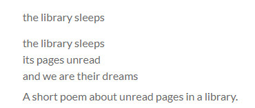 A short poem about unread pages in a library.