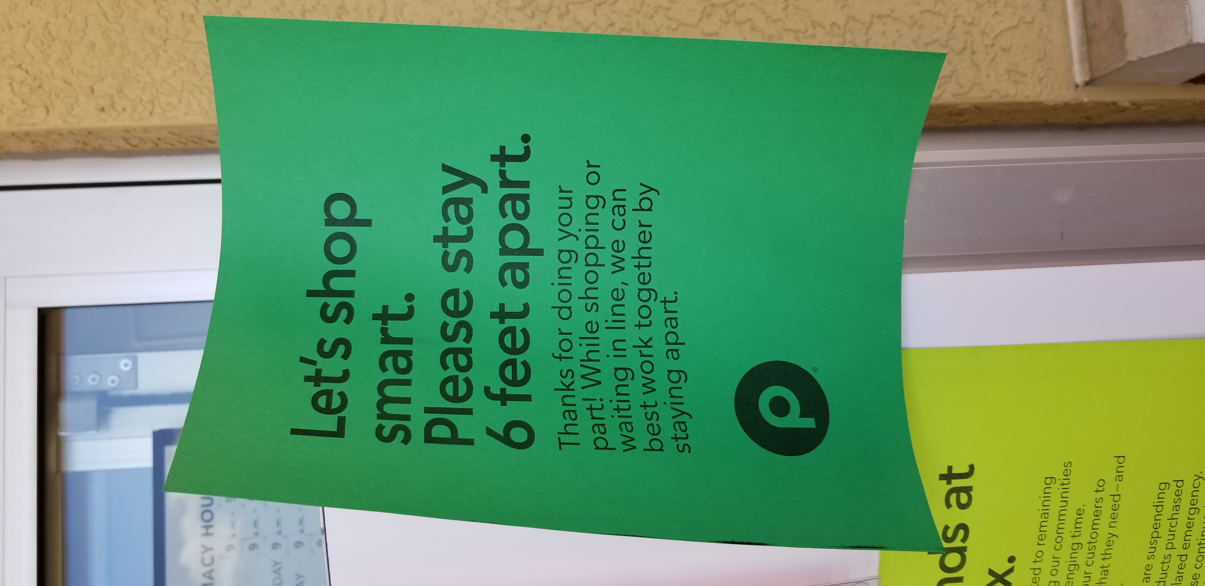 My local Grocery store - Publix at 3521 Thomasville Rd Tallahassee, FL 32309-7134, put up this rhyme to encourage people to practice social distancing. It mostly work - but not completely - inside