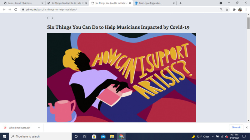 Details fundraisers and free ways to support musicians - signing petitions to support potential laws, watching live streams via social media, etc..