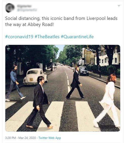 This image takes an iconic, well-known photo and changes it into a relatable meme by reimagining the moment with social distancing in mind.