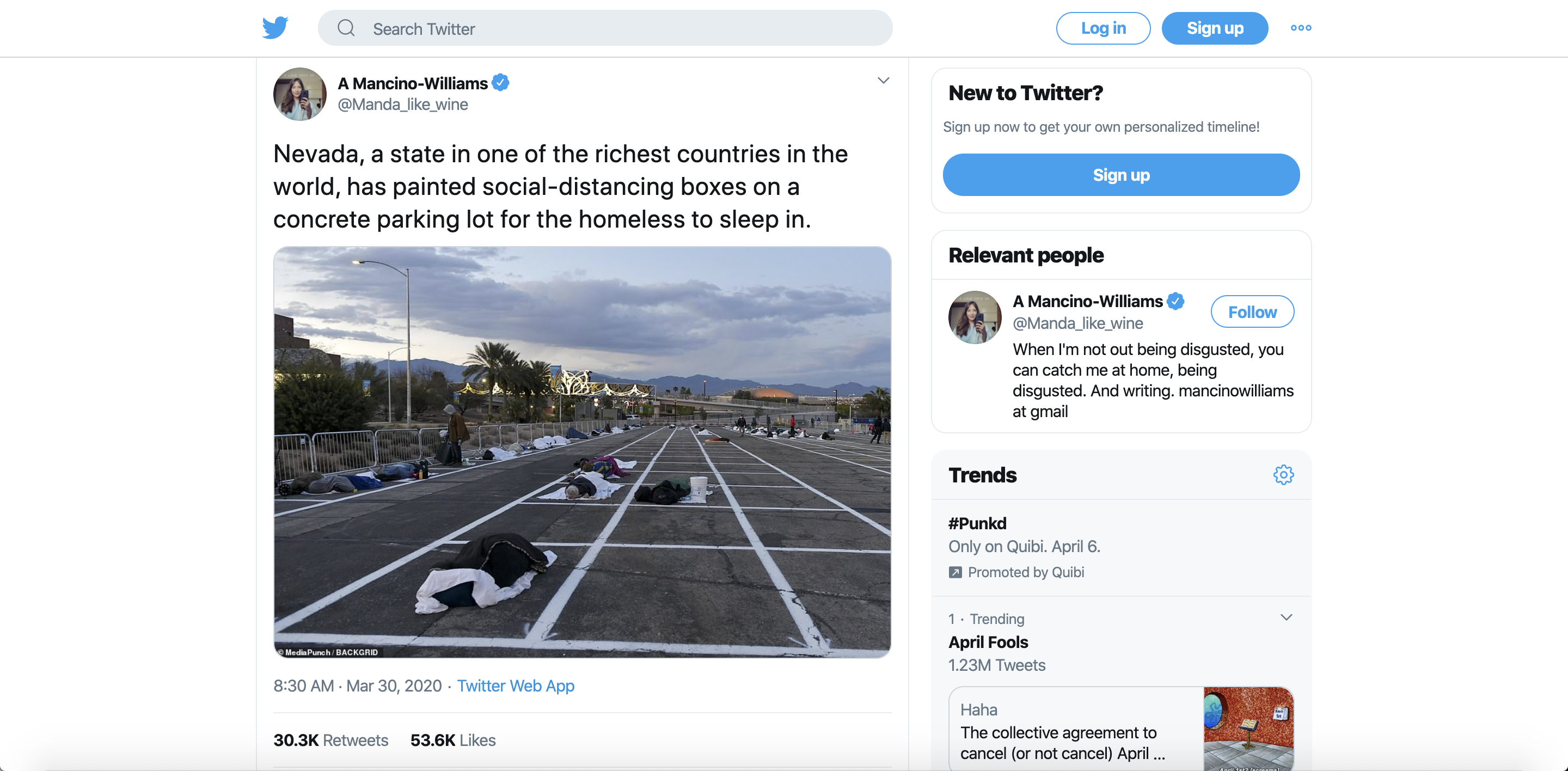 Tweet re: treatment of Las Vegas Homeless During Pandemic