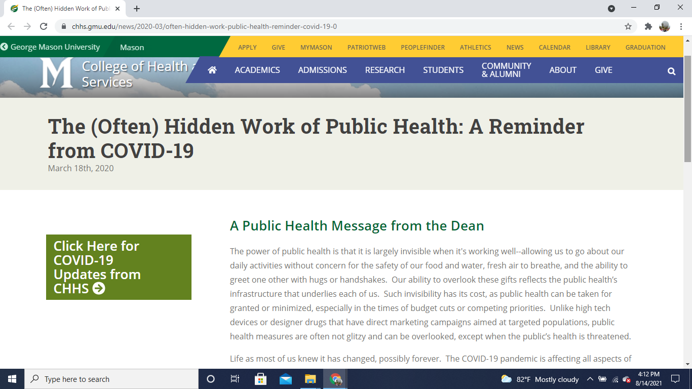 The (Often) Hidden Work of Public Health: A Reminder from COVID-19