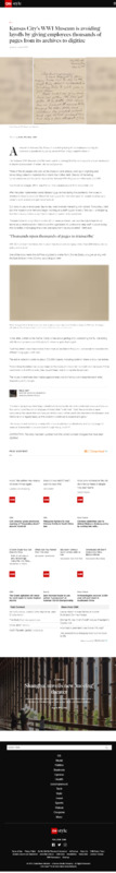 Kansas City's WWI Museum is avoiding layoffs by giving employees thousands of pages from its archives to digitize.