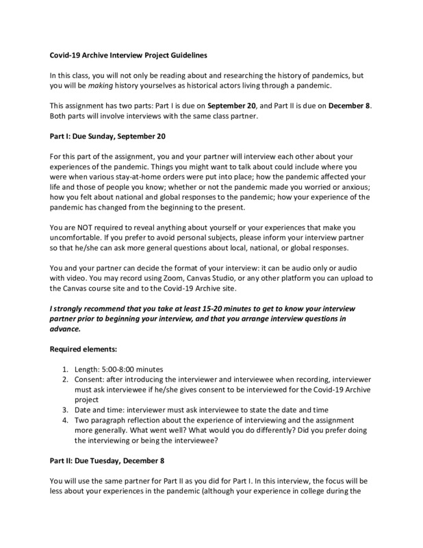 This was an assignment students completed in History 1215: The Origins of Today: History of Global Pandemics.