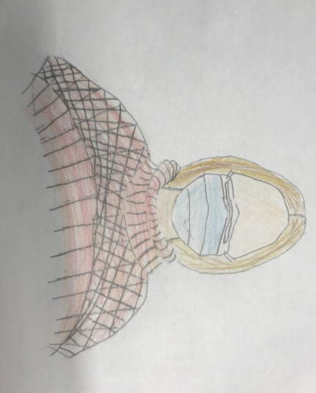 I made a self portrait of myself with a mask on. I gave myself no facial features because I feel that when I have a mask on I feel invisible. During quarantine I have had lots of time to think and reflect on everything and that has helped me grow as a person. I have also had time to think about all the things that are happening externally like I have grown taller and have moved up 3 shoe sizes. I think in this isolation it has helped me grow, inside and out.