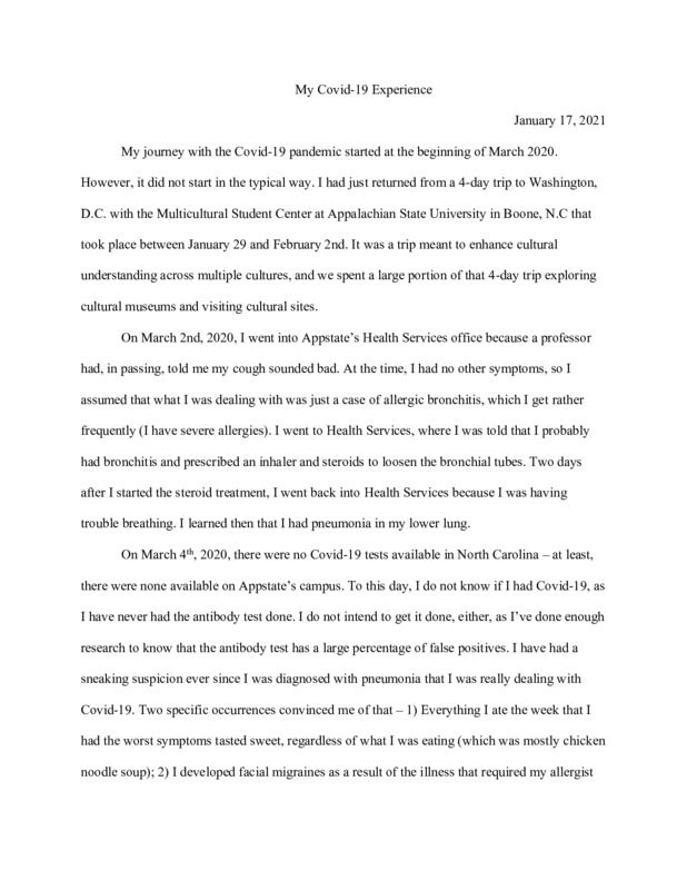 The essay I've submitted demonstrates the societal issues that the pandemic has helped to unmask as well as serving as a personal documentation of my own journey.