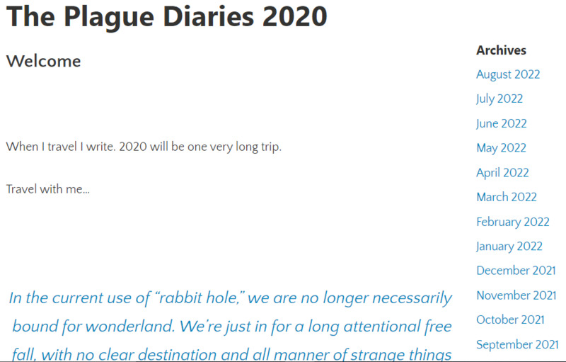 I read Defoe's diary on the Plague in 1665 and decided to replicate it but also tell a story of what else happened to the world and to me for 12 months beginning 18th March 2020.