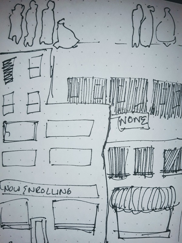 Getting to free food pick up has been difficult, but I am so thankful. I have to use Ubers because public transportation is even more difficult. As I am riding in my Uber I draw my city. This has been adding to how I sketch and create while moving so I can capture the purest essence of my people and my city.