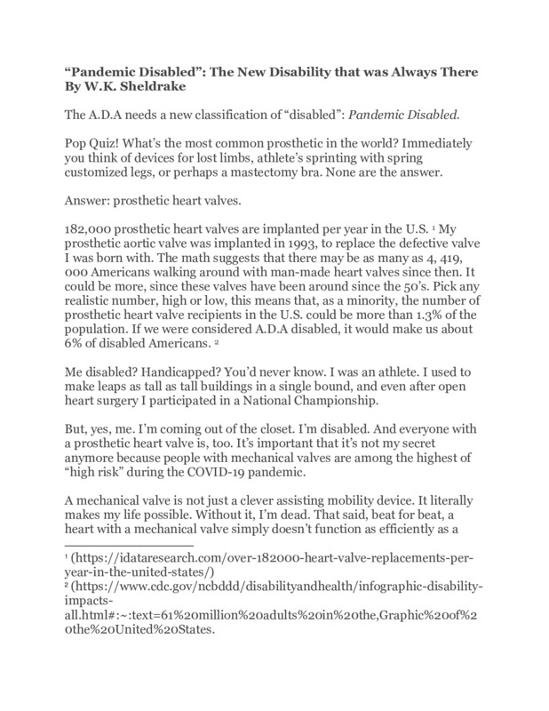 The A.D.A needs a new classification of “disabled”: Pandemic Disabled.