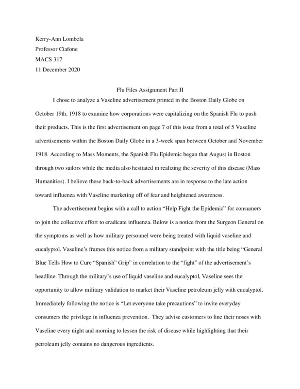 Analyzing a Vaseline advertisement and its connection to COVID-19