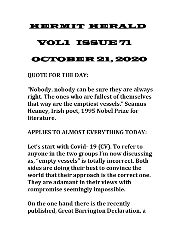 This is my great niece and her classmates at pre-school in Boston. They are busy playing with each other and are creating and building something wonderful together. They don’t even notice that they are wearing masks. I guess you could say that this is a snapshot of the pandemic through the eyes of children. They are so adaptable that they never even notice the annoyance masks can be to adults. In other words, if we all took a page from their playbooks, the world would be in a much better place right now. I am sure that when at home there are no masks, but in public, children seem to have no issue in protecting both themselves and their friends.