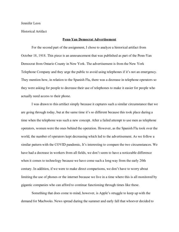 I used the announcement from the article to create a comparison between the situation with the Spanish flu in 1918 and our current situation with the pandemic