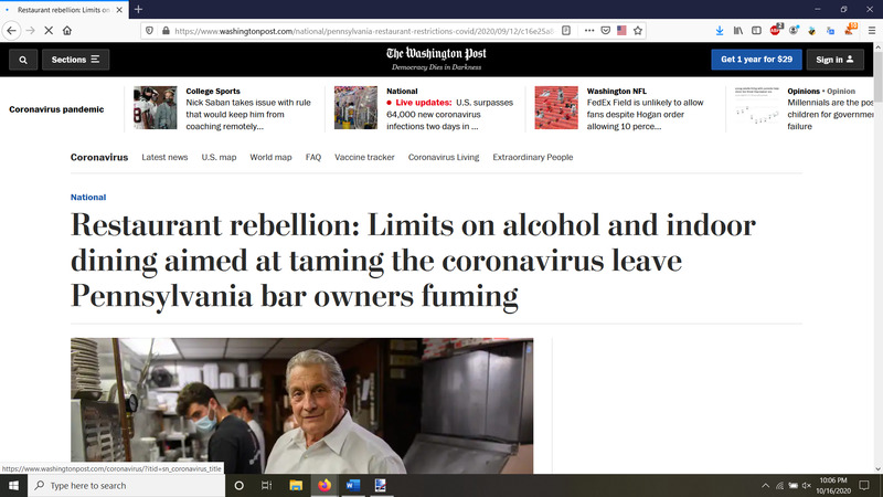 This is a story of a local restaurant owner who decided he wanted to fight back against "oppressive" rules and regulations that were put in place for restaurants and bars. Previously, they had started to reopen places to eat and get drinks, and then over the Fourth of July weekend in Pittsburgh, after seeing a sharp spike in case number the week prior, the city installed even harsher rules for restaurants and bars to follow. Many didn't like this, and they surely weren't going to follow the rules until they started to be closed down left and right by the health department, then suddenly everyone shaped up.
