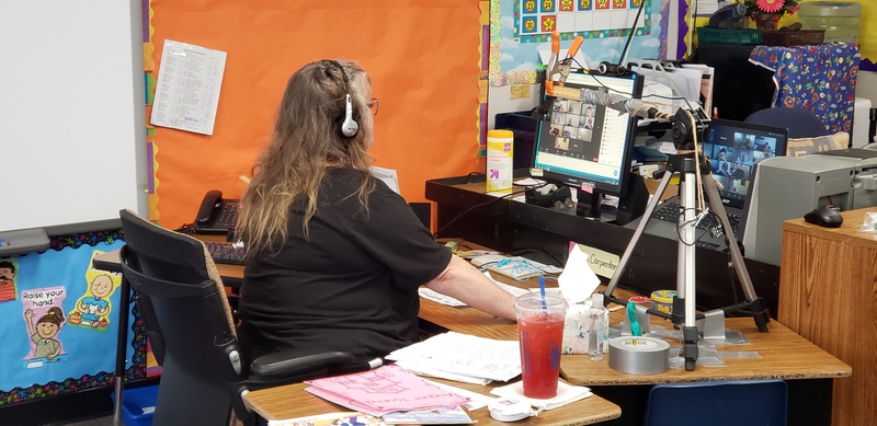 My mom has always been an elementary teacher and is finally nearing retirement. The pandemic has been a great challenge for her to adapt to. Her school year started with online instruction before moving to in-person learning later on. As a lifelong teacher, the adjustment to online teaching has been incredibly different and difficult for her. Especially considering the lack of support from the school and the district. The setup in the picture was jury-rigged together using materials that were already owned in order to try and provide the best learning experience for the students.
