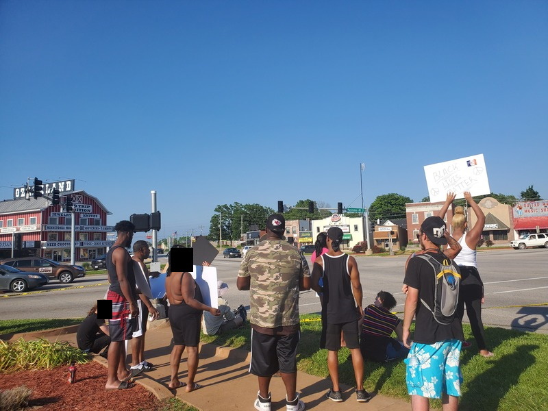 Following the death of George Floyd, there were protests in many major cities. There also were protests in small rural towns as well. Camdenton is a tourist town near the Lake of the Ozarks in Missouri. Protesters were at the main intersection in town, in front of the courthouse. Here, there was no standoff with police. During the time I was there, I only saw them drive by. Many shared stories of times they experienced racism, we also sang and chanted.