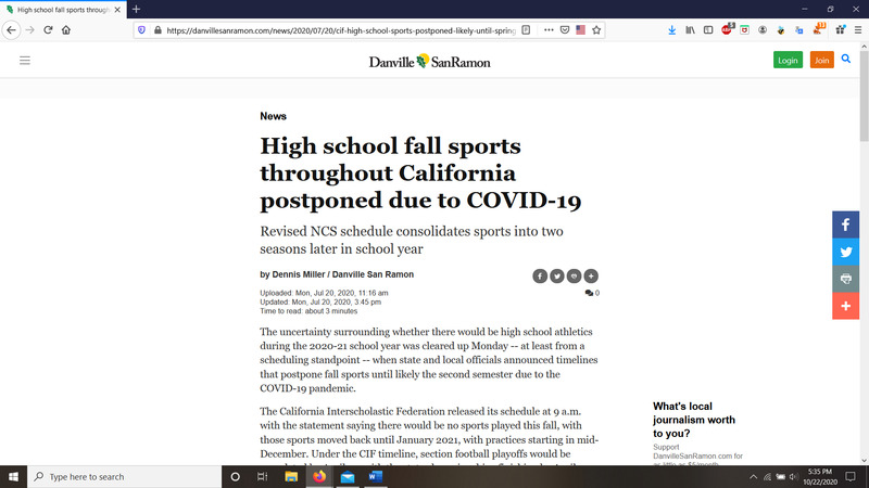 I was not able to play sports because of Covid-19.