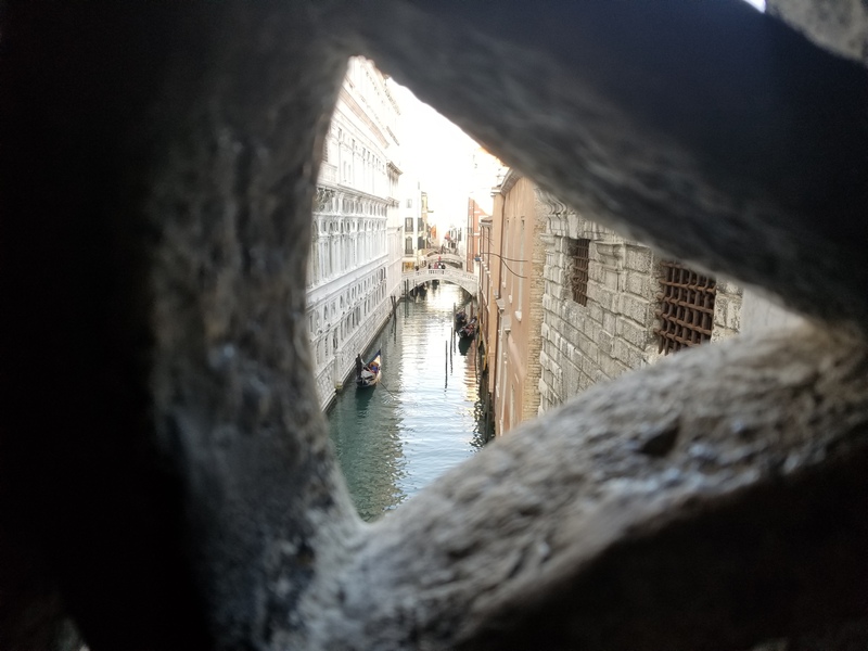 As I reflect on that time, I remember what happened right after. As people got sick, businesses shut down, people were restricted to their homes, I could think of nothing else except for this view from Doge's Palace. Casanova was the most infamous prisoner, especially since he was the only one known to escape. Just imagine what it must have been like. Making this walk over this bridge and this little sliver of light is the last you saw of the outside world. After that walk, it was just stone and candle light. I took this picture on my cell phone and as the course continued this term, I kept thinking about this picture. In a place like Italy, where religion is part of the culture, they were hit so hard by the pandemic. What must it be like there to be restricted to your home and all you can do is look out your window? The idea of only being able to see a small piece of reality while the world around you changes in extreme ways, not knowing what comes next or when it was going to happen. Imagine what went through prisoners minds in the early 1600s as this small image is the last thing they say. Do you think they found solace in a deity or faith? Those who were confined to their homes and were getting sick, what must have gone through their minds? The reason I wanted to submit this picture is because this pandemic really showed us, we are all human. By nature there are things we cannot escape and things that we come to appreciate. When we become restricted and slow down, we begin to appreciate what's around us no matter how big or small. The pandemic restricted me from travelling abroad and I lost a number of friends and family members but I had no restriction on my view of the world. I could still experience nature and explore and appreciate. The pandemic was a humbling experience. This picture is a visual representation of that experience. There's so much out there but only when we cannot explore at our leisure, do we stop to notice and take it in. It's only through isolation that we miss the world around us. Is it the isolation that caused madness or fear? Only being able to see such a small part of such a big world, it could drive anyone mad.