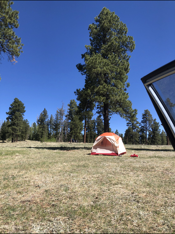 This tent is where my father and I slept for a couple of nights during the beginning of the pandemic. We camp a couple of times a year because it gets so hot in Phoenix, which is where we live. But this trip wasn't just a heat escape, it was break from all the noise and the fear in the world. We originally were going to an official campsite however they were all closed due to the Covid-19 outbreak. This didn't stop us though, we just began driving on random dirt paths with my 2004 Toyota Corolla. After probably 10 dirt roads we finally got lucky and found a place to set up camp. There were even a couple of other people camping, don't worry we kept our distance. There were some points when I thought we would have to call it quits but I am so glad we didn't. If you've never been camping I highly suggest you try it. It's a great place to just relax your mind and focus on the simple things in life. Which is why one of the first things we did was turn off our phones. Being able to just live in the moment is something I don't take for granted anymore. It's so easy to get caught up in news and media, but when you're out in the woods none of that applies to you for that time. My dad loves being outside in nature away from everything, but he has glaucoma and can't drive. I know how much these little trips mean to him. If it was up to my dad he would be camping for months at a time. He's retired so I can see why but I don't have the time to do so. I just want this to me a reminder that doing small stuff like this can really go a long way. Especially in times like these.