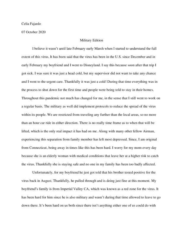 this story is important to me because members who are serving in the armed force, will understand and relate to the struggles that I went through during this pandemic.