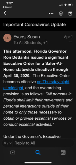 *This is a screenshot of an email from FGCU. It informs the students of the governor's executive order for staying at home.