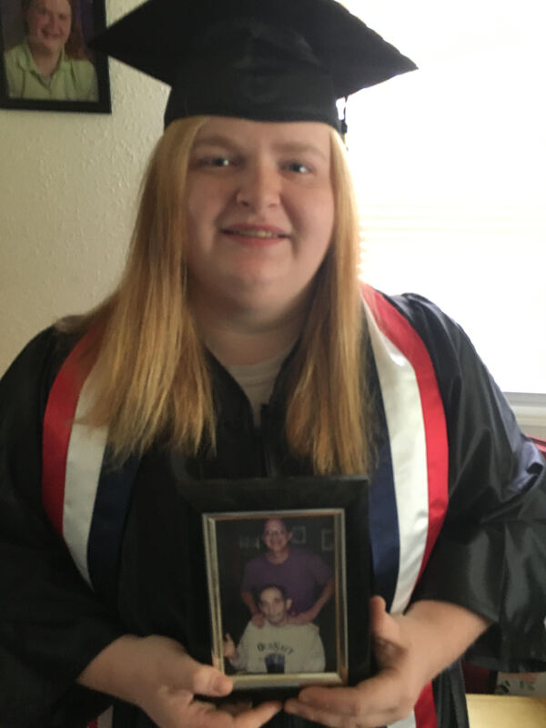 In this photo, I am holding a picture of my deceased grandfather while I'm dressed for my undergrad graduation that did not happen. I wanted to take a picture in my regalia on the campus that we both studied at, but due to the pandemic, I was forced to finish my undergrad degree at home. This photo in my regalia reminded me that I could not celebrate this accomplishment at the same place that my grandfather did only 50 years before.