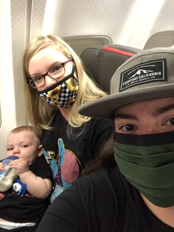 This was mine and my family's first trip we took during the pandemic. We had been quarantining since March and we were both essential workers so we also had been going into work everyday while so many other people were being laid off or furloughed. It was stressful because it is a pandemic and there is always worry about catching the virus and getting sick. We were also traveling with our 9-month-old son, which added even more worry to an already stressful time. This photo is important because it shows the new restrictions when it comes to flying. A mask is to be worn at all times or risk getting escorted off the plane and banned from flying with the airline again. It involved an endless amount of hand sanitizer every ten minutes or so and being hyper aware of the surfaces you are touching going through the airport. Flying is already riddled with anxiety and flying during a pandemic elevates that anxiety tenfold.