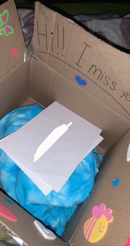 This photo is a birtday box my friend sent me from Maryland to Florida. We originally planned on celebrating together because we'd be at school still, riding out the end of our freshman year of college, but with all Florida universities being shut down in early March, we were forced to move out of our dorm and return to our homes. This image is important to me because with the craziness and uncertancy of the future, we went back to our roots and stayed in contact the old fashoned way, letters. While we still talked on the phone and texted, waiting to get your next letter in the mail was exciting and fun. In this particular box, I was sent a shirt that my friend tye-dyed herself & a couple of letters about different things she'd been doing (or not doing) and just letters about life. Even though we were apart, being able to write and send momentums made us all feel closer.