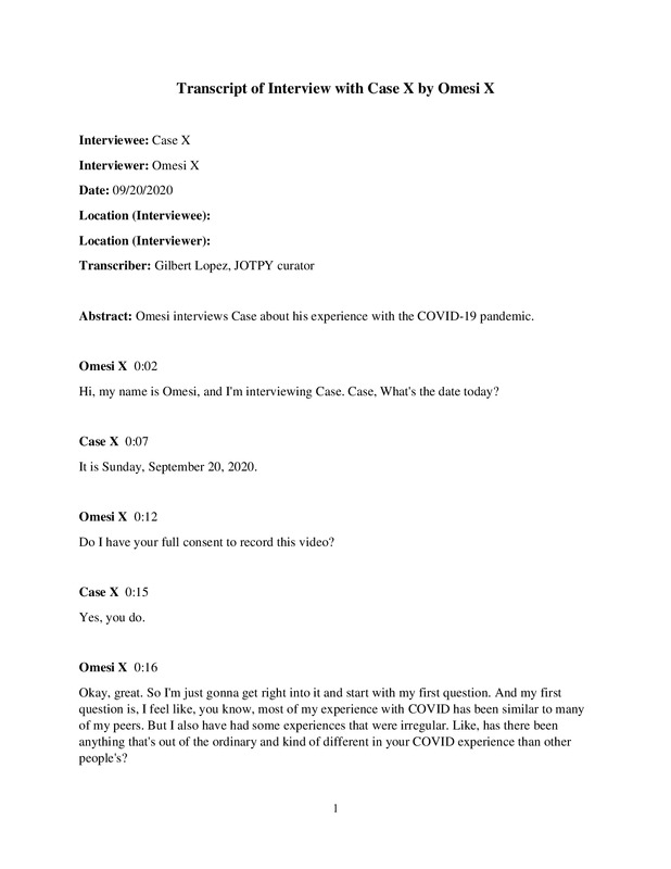 I interviewed Jacob about his experience from December 2019-present (September 2020)