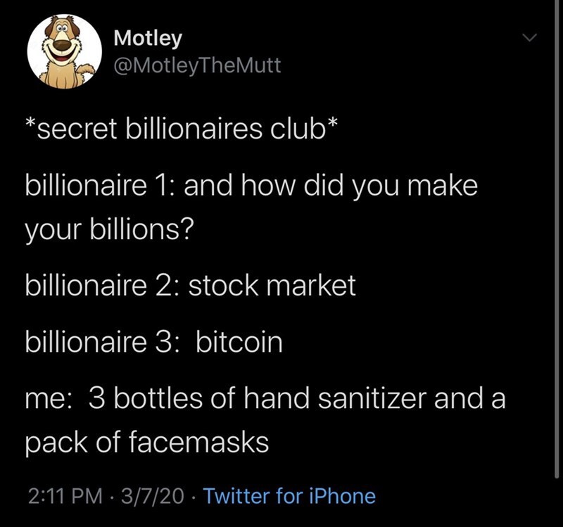 This meme is bringing light and making fun of the price inflation of relatively cheap common items. Once the pandemic officially made its way into America, there has been a shortage of items such as Hand Sanitizer, Masks, Toilet Paper, and other common essentials. This has led to the price inflation in these goods. At one point during the Pandemic, I found a pack of six Purell Hand Sanitizers going for more then 80 dollars.